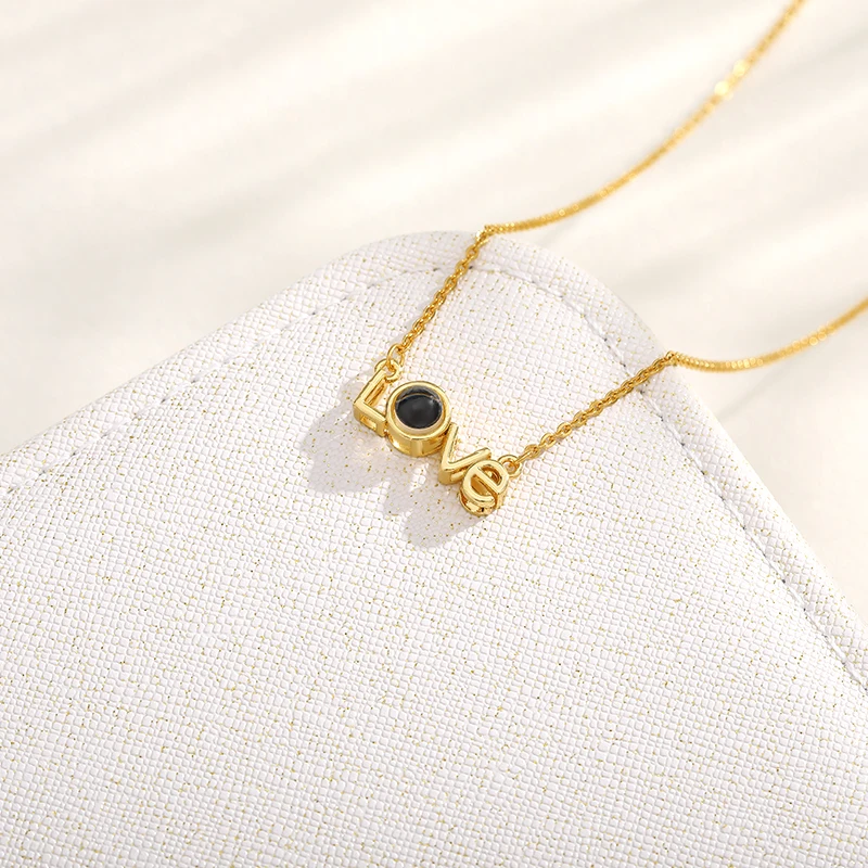 If You want to buy for Customized Jewelry, then Love Heart Romantic Love Memory Wedding Necklace Rose Gold&Silver 100 languages I love you Projection Pendant Necklace is possible make you love