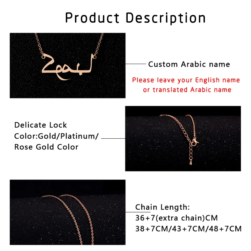 Addition Information of Nameplate Necklace Women Gold Chain Custom Arabic Name Necklace Collares Mujer Stainless Steel Islam Jewelry BFF Bijoux Femme