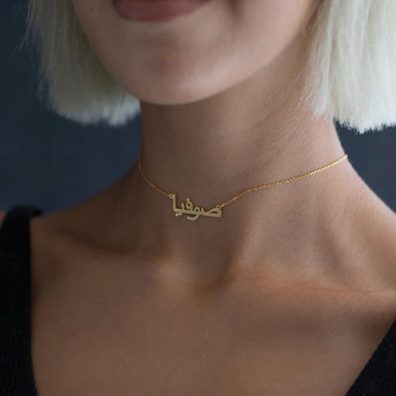 .Pictures of Nameplate Necklace Women Gold Chain Custom Arabic Name Necklace Collares Mujer Stainless Steel Islam Jewelry BFF Bijoux Femme