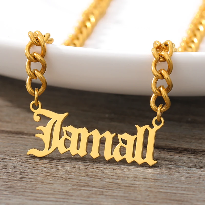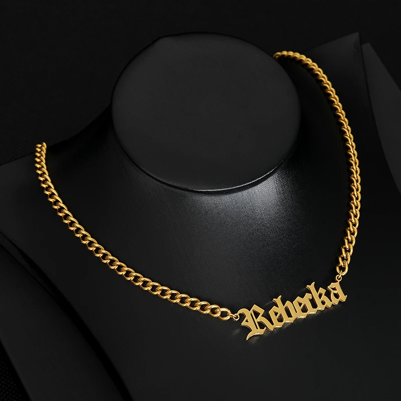Personalized Custom Name Necklace Pendant Gold Color Cuban Chain Customized Nameplate Necklaces for Women Men Handmade Gifts