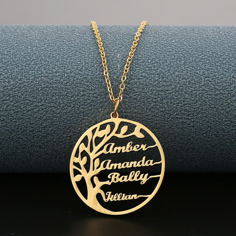 Personalized Customization 4 Name Necklace Tree of Life Babygirl Pendant Gold Friendship Necklace Jewelry for Women Man Gift