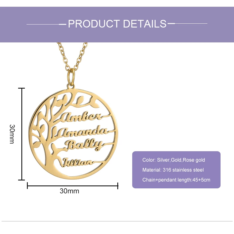 Addition Information of Personalized Customization 4 Name Necklace Tree of Life Babygirl Pendant Gold Friendship Necklace Jewelry for Women Man Gift