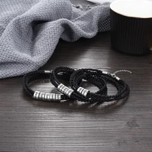 Addition Information of Personalized Engraved Name Braid Rope Bracelet for Men With Stainless Steel Custom Beads Wrap Bracelets & Bangles Gift