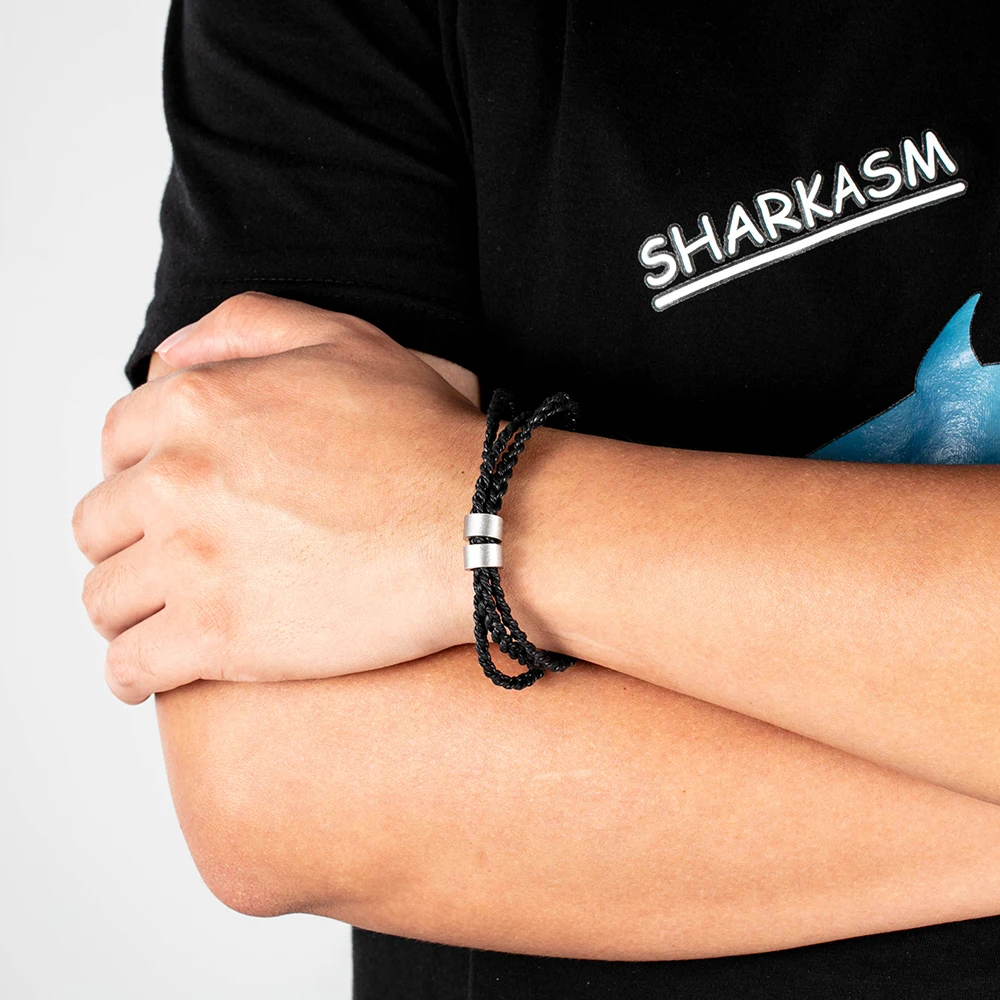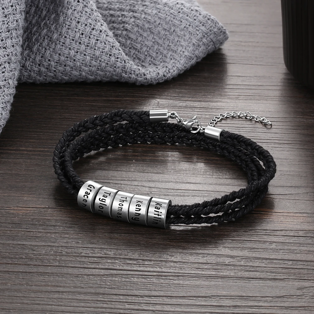 .Gallery for Personalized Engraved Name Braid Rope Bracelet for Men With Stainless Steel Custom Beads Wrap Bracelets & Bangles Gift