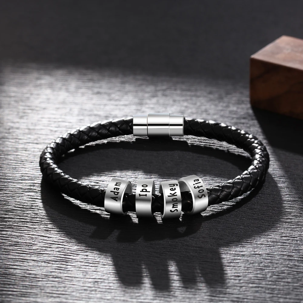 .Gallery for Personalized Engraved Name ID Bracelets For Men Custom Beads Braid Rope Bracelets & Bangles with Magnetic Clasp Gifts for Him