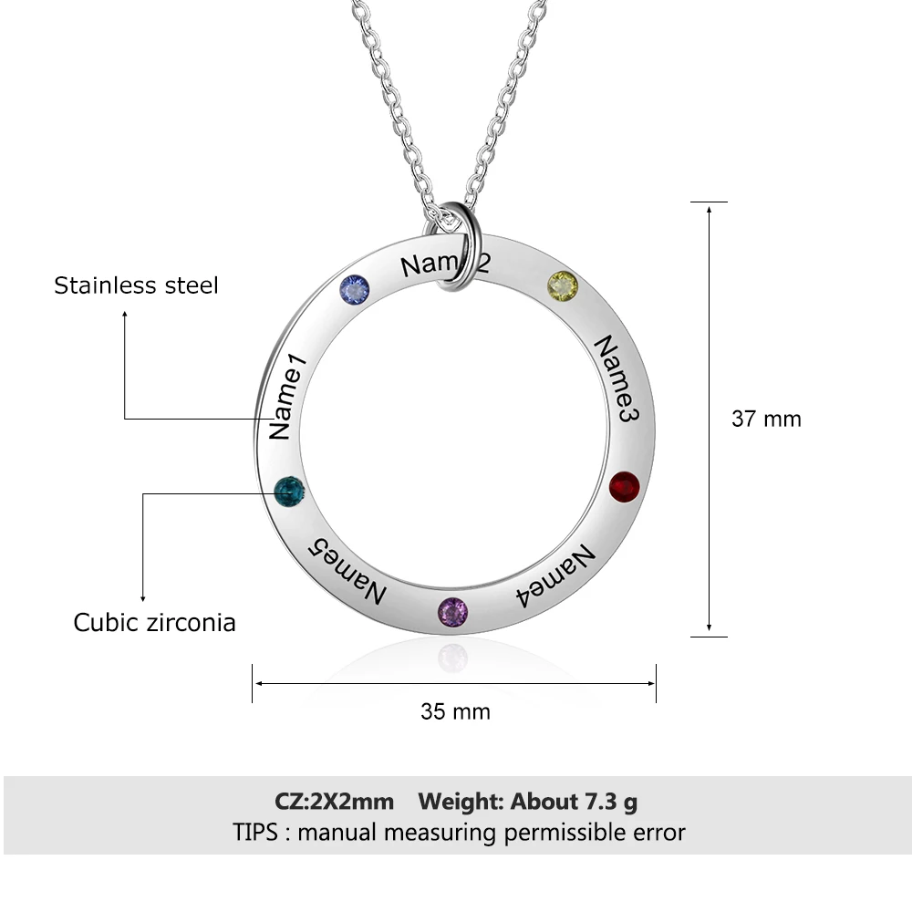 Addition Information of Personalized Family Names Necklace with 5 Birthstone Stainless Steel Engraved Jewelry Pendant for Mother/Grandmother (NE103179)