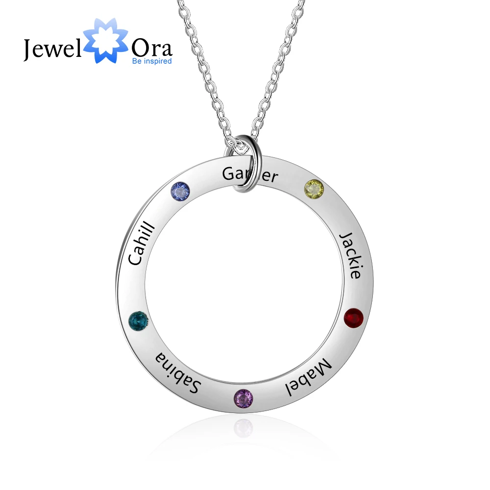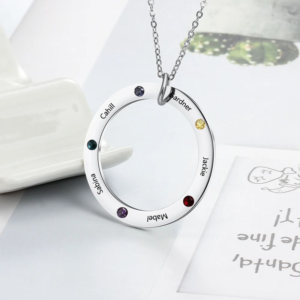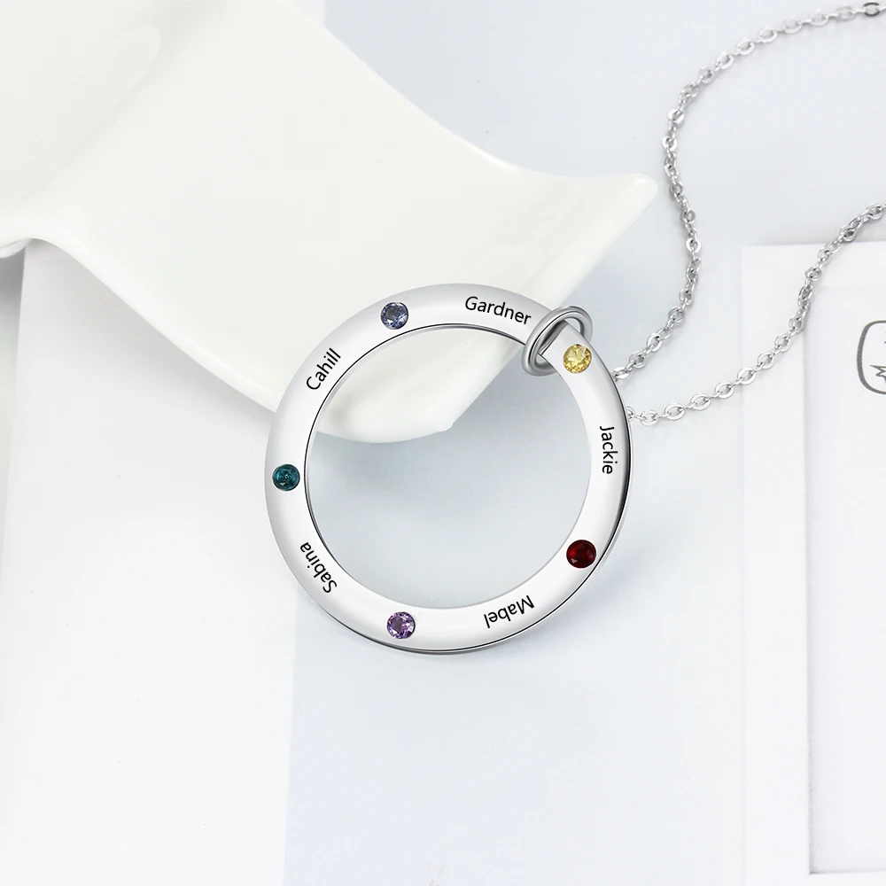 Personalized Family Names Necklace with 5 Birthstone Stainless Steel Engraved Jewelry Pendant for Mother/Grandmother (NE103179)