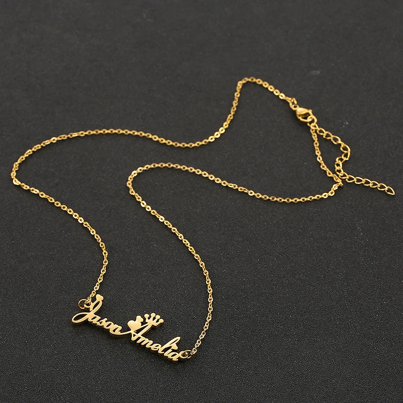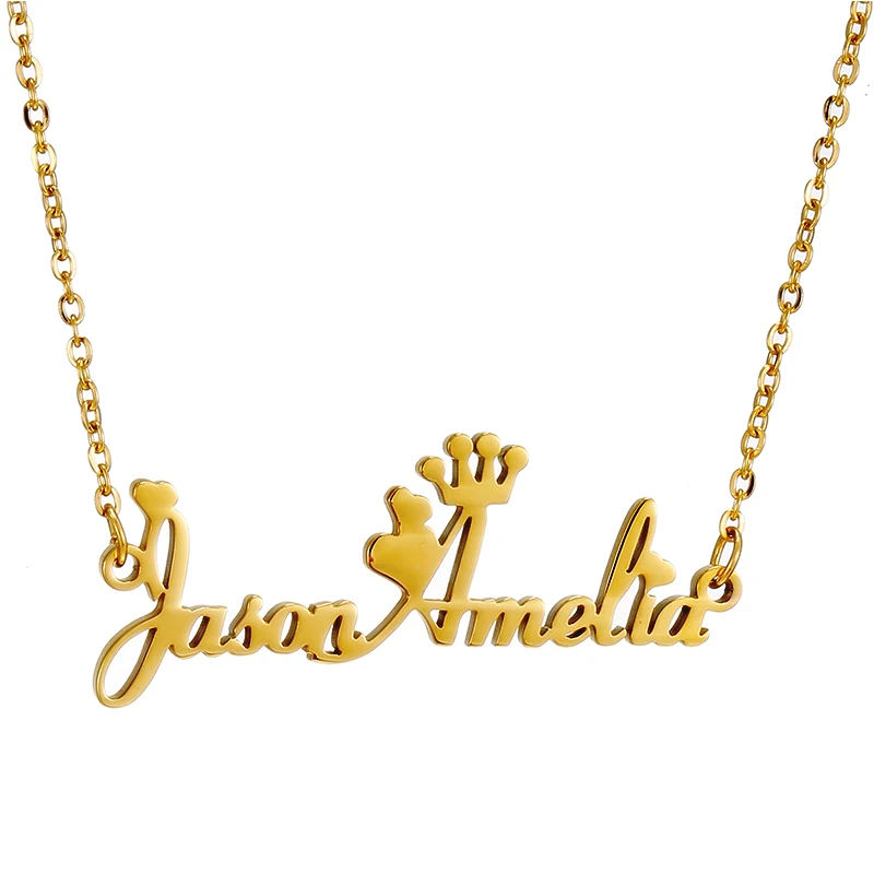 .Gallery of Personalized Name Necklace Custom Steel Gold Pendent Love Heart Crown Jewelry For Women Man Jewellery Accessories Gift 2019