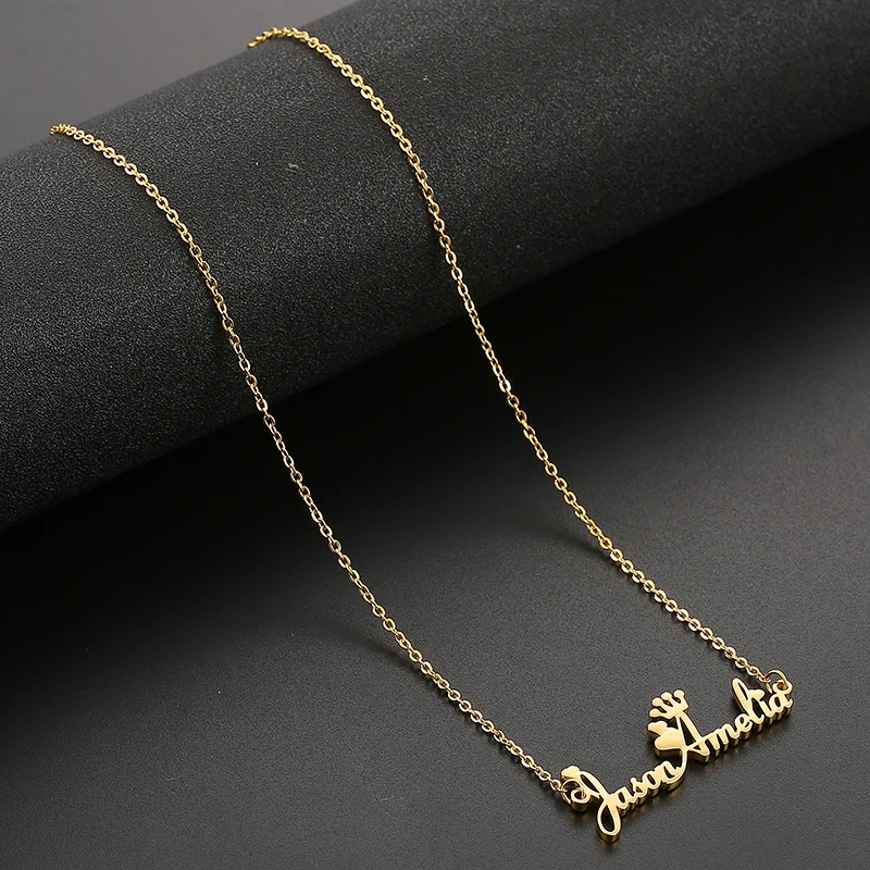 Personalized Name Crown Necklace Handmade Customized Cursive Font Nameplate Pendant Stainless Steel Chain Jewelry Birthday Gifts
