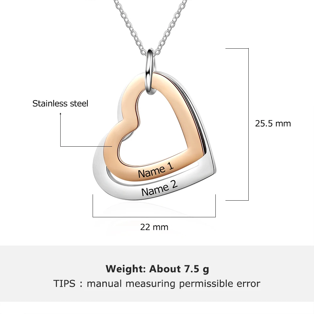 Addition Information of Personalized Rose Gold Color Stainless Steel Heart Pendant Necklace Custom Engraving Name Necklace Gift for Girlfriend(NE103631)