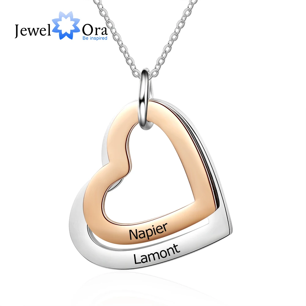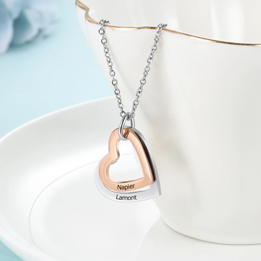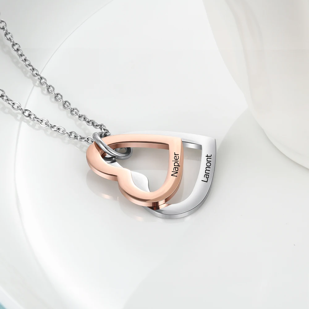 .Gallery for Personalized Rose Gold Color Stainless Steel Heart Pendant Necklace Custom Engraving Name Necklace Gift for Girlfriend(NE103631)