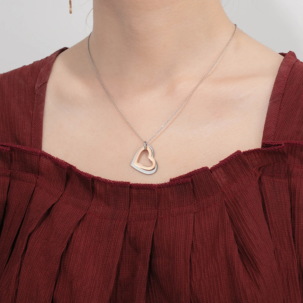 Personalized Rose Gold Color Stainless Steel Heart Pendant Necklace Custom Engraving Name Necklace Gift for Girlfriend(NE103631)