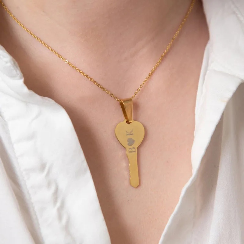 Good Price for Stainless Steel Choker Key Heart Custom Necklace Laser Personalized Jewelry Pendant Couple Necklace Women Best Friend Gift