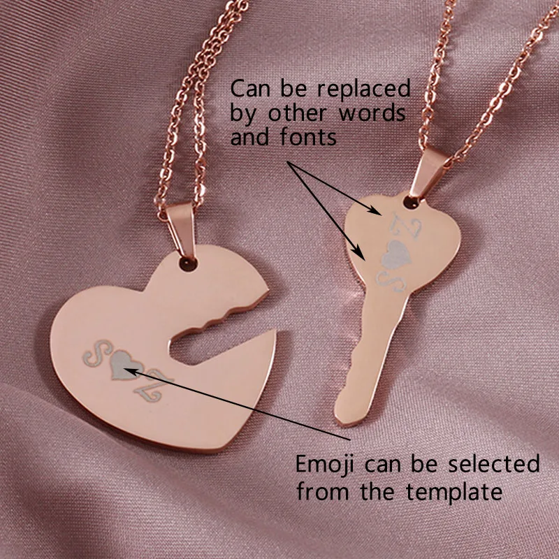 Addition Information of Stainless Steel Choker Key Heart Custom Necklace Laser Personalized Jewelry Pendant Couple Necklace Women Best Friend Gift