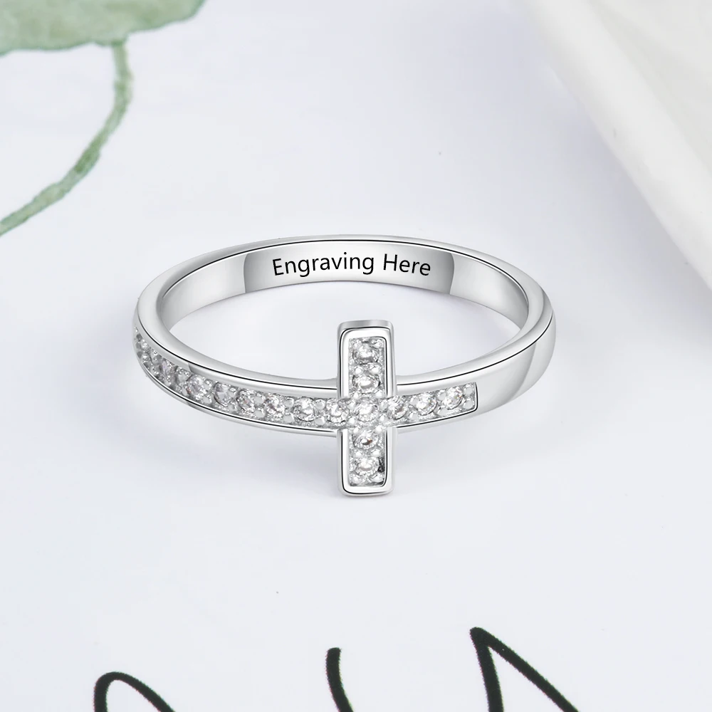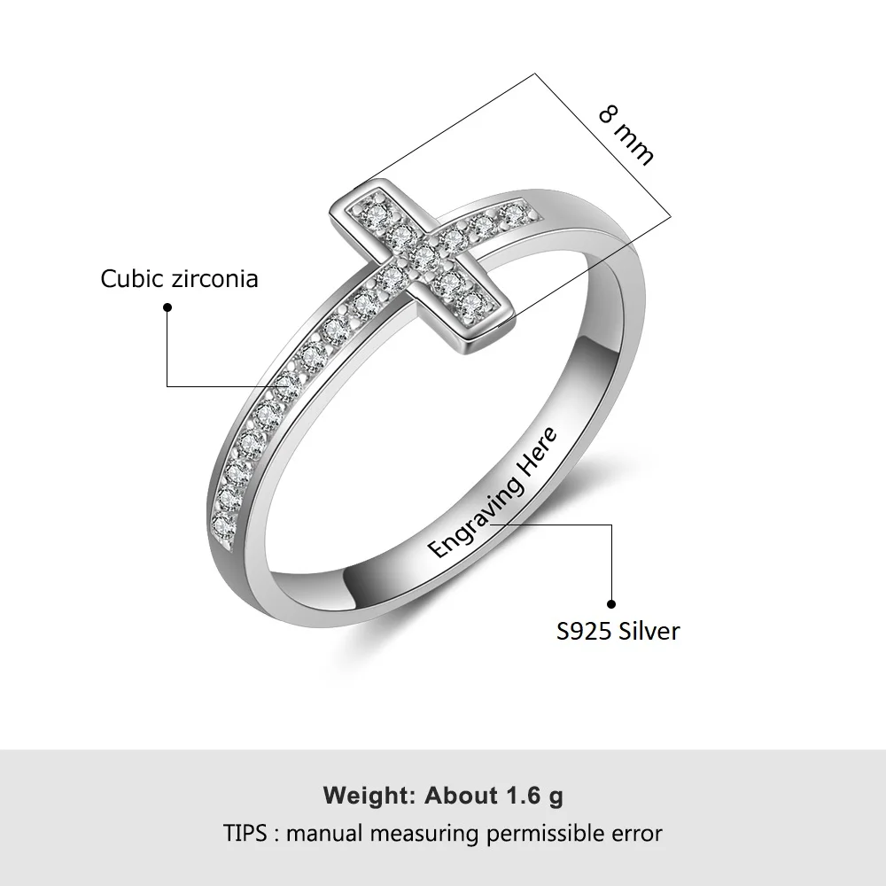 925 Sterling Silver Personalized Cross Sideway Engraved Rings for Women with Cubic Zirconia Custom Names Rings Jewelry Gifts