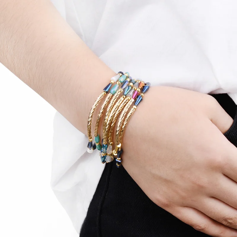 Addition Information of BOJIU Trendy Faceted Pear-shape Crystal Beads Customized Bracelets For Women Adjustable Gold Copper Tube Bracelet Bijoux BC342