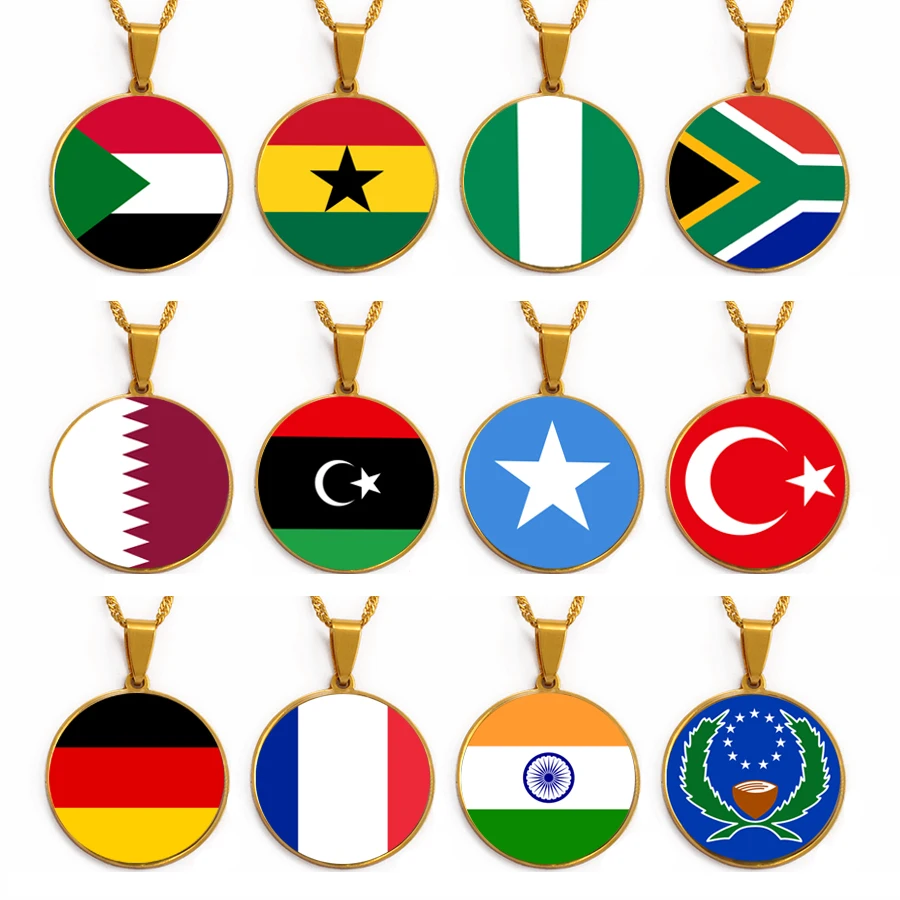 .Images of Custom Flag Necklaces Personalized Jewelry Customize Africa Arab Middle East Europe Asia & any Country Flags #137121