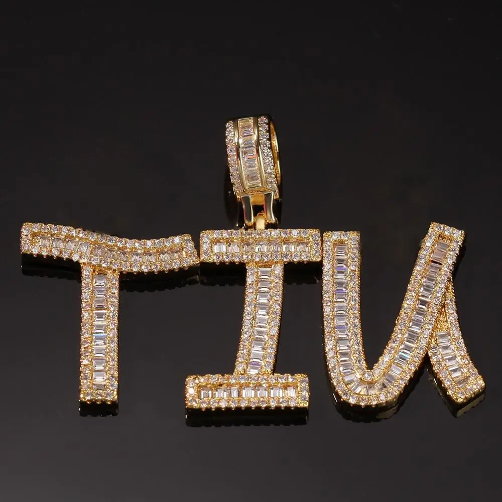 Cheap Price for Custom Name Cubic Zircon Baguette Letters Hip Hop Pendant Chain Gold Silver Men's Jewelry with Tennis Chain for Gift