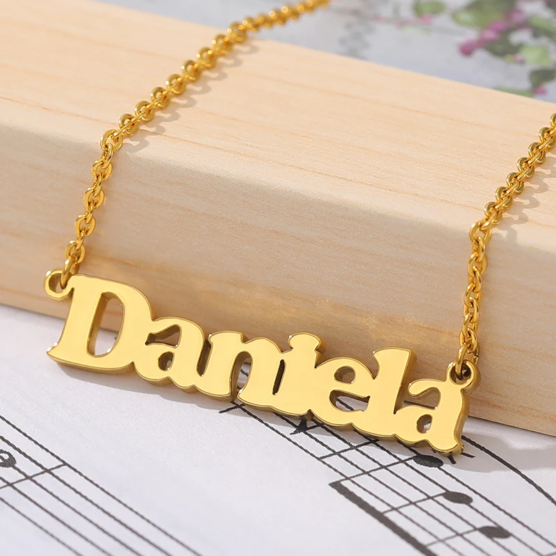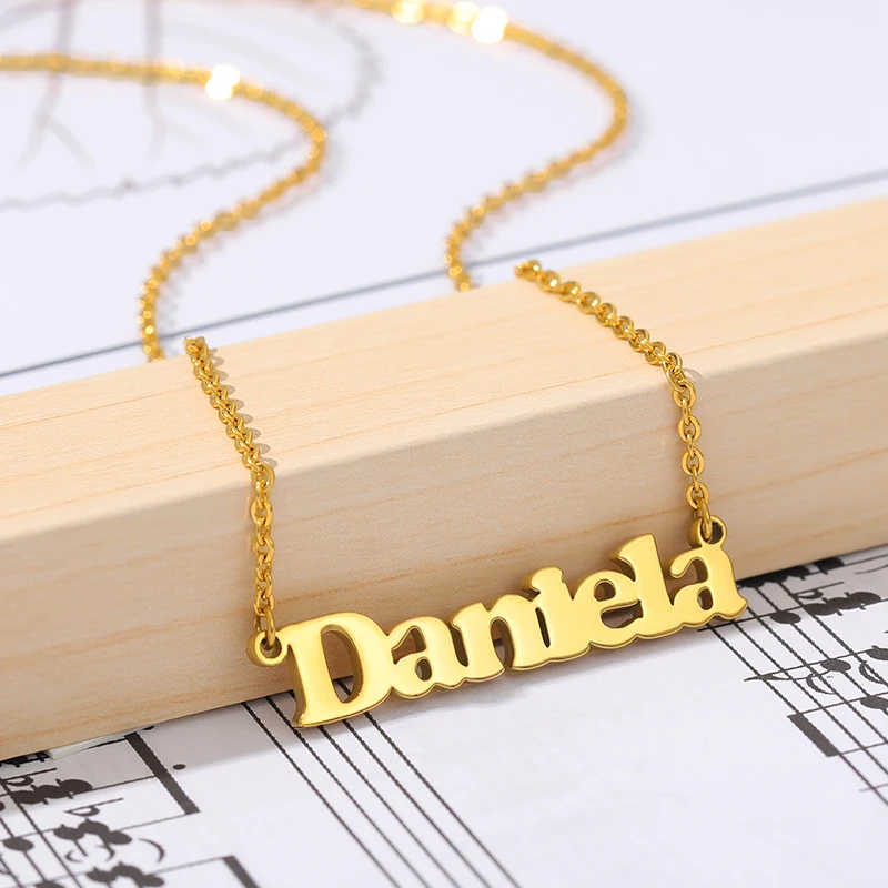 .Images of Customized Fashion Stainless Steel Name Necklace Custom Personalized Letter Gold Chain Choker Necklace Pendant Nameplate Gift