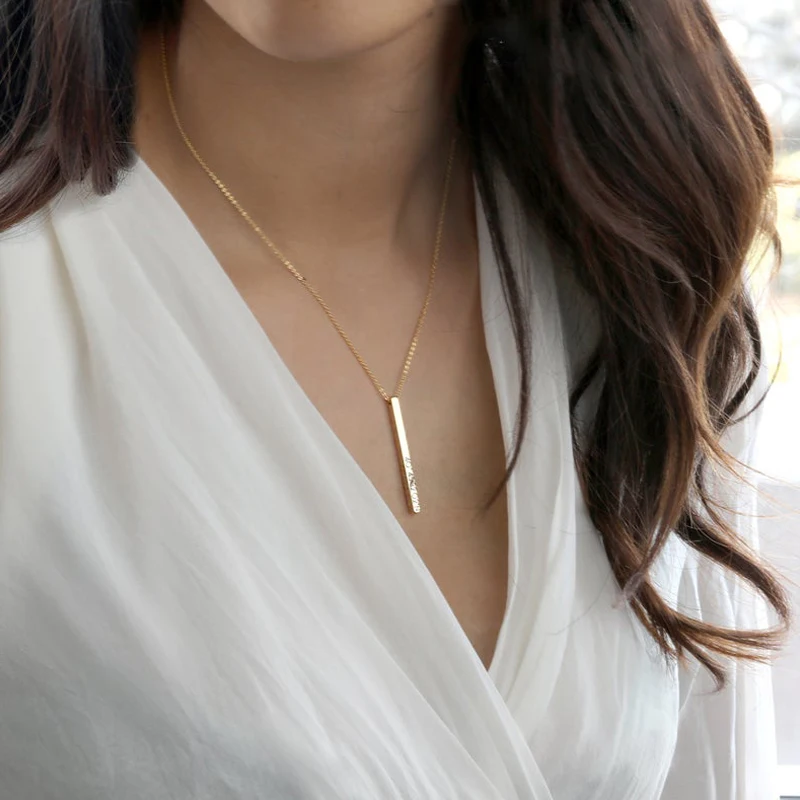 Offer Description for Four Sides Engraving Personalized Square Bar Custom Name Necklace Stainless Steel Pendant Necklace Women/Men Gift Nadzyjnik