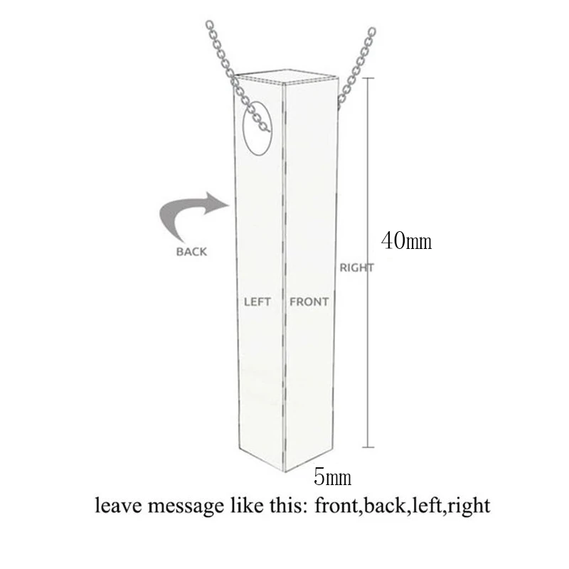 Addition Information of Four Sides Engraving Personalized Square Bar Custom Name Necklace Stainless Steel Pendant Necklace Women/Men Gift Nadzyjnik