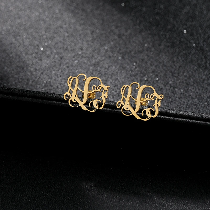 Special Chance for Initial Letter Earing Stainless Steel Earing Personalized Monogram Name Stud Earrings For Women Pendientes Aretes De Mujer 2019