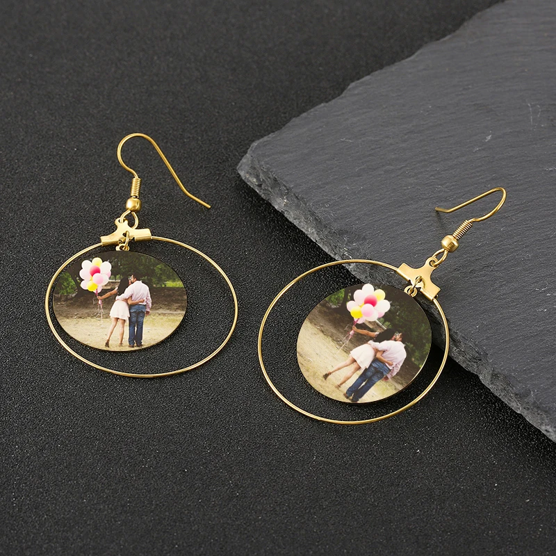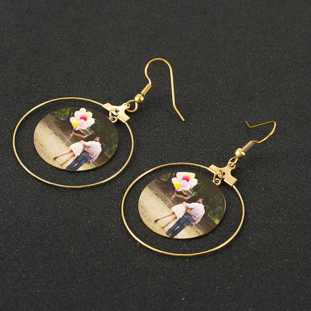 .Gallery of Korean Cute Photo Earrings Engrave Name Jewelry Custom Coil Hook Picture Earring Wedding Gift for Women Girl Accessories