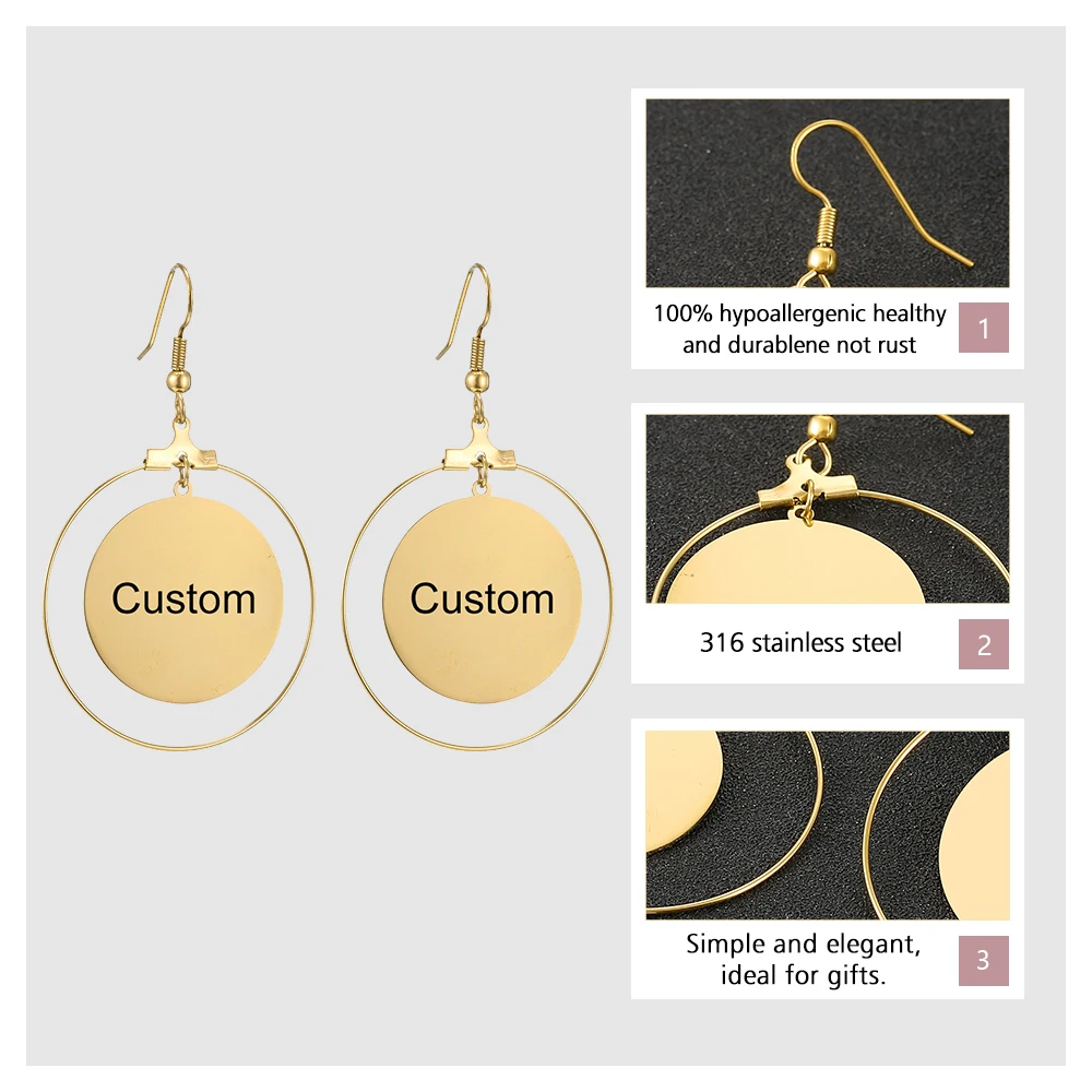 Custom Name Earrings Women Silver Gold Stainless Steel 1 Pair Personalized Big Nameplate Handmade Circle Oorbellen Party Gifts