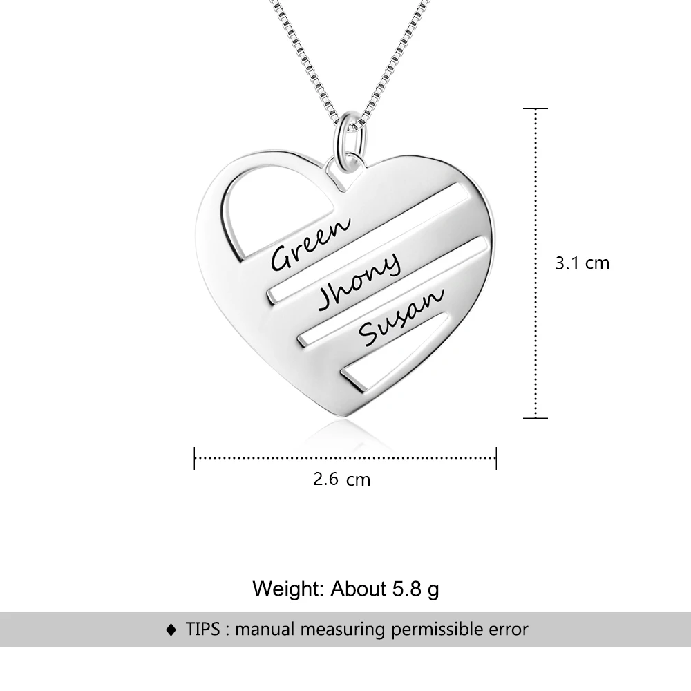 Special Chance of Personalized Heart Necklace with 3 Names Customized Family Necklaces & Pendants for Women Mother's Gift (NE102390)
