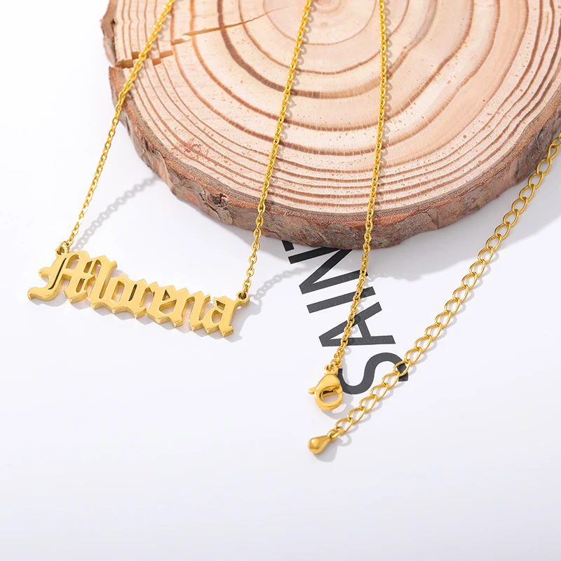 Personalized Old English Font Letter Name Custom Necklaces For Women Men Stainless Steel Gold Silver Long Chain Pendant Necklace