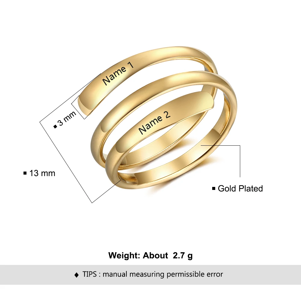 Offer Description of Personalized Spiral Twist Ring Engraved 2 Names Silver Gold Stainless Steel Custom Adjustable Rings Promise For Her BBF