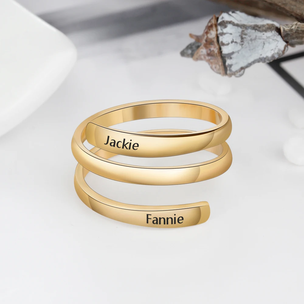 Personalized Spiral Twist Ring Engraved 2 Names Silver Gold Stainless Steel Custom Adjustable Rings Promise For Her BBF