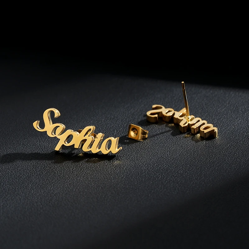 .Images of Stainless Steel Custom Name Stud Earrings For Women Personalized Nameplate Earrings Fashion Jewelry Oorbellen Pendientes Mujer